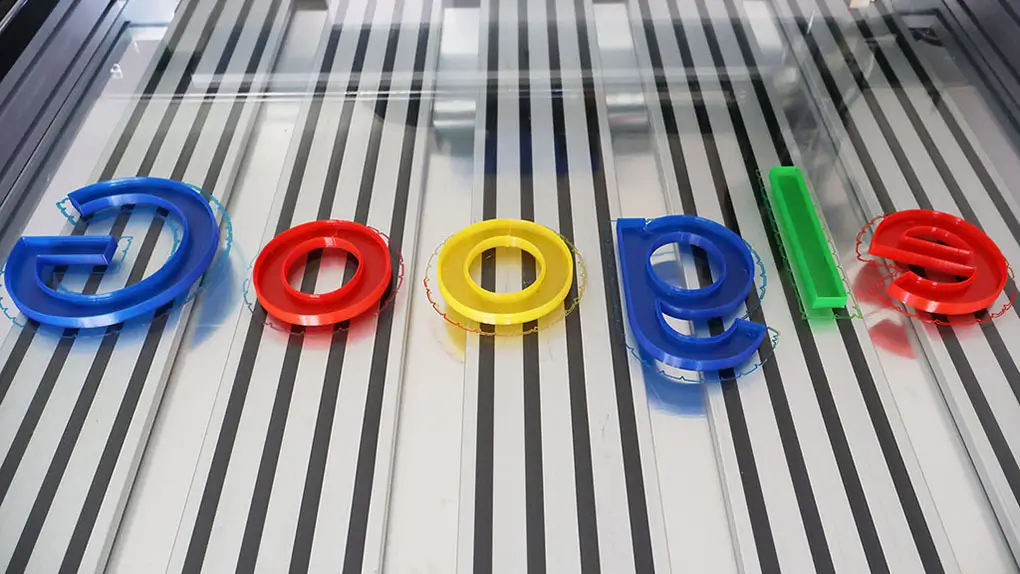 These illuminated channel letters Google are created by an LED signage printer, it is also called 3D signage printer, LED channel letter printer, 3D lettering printer or 3D letter printing machine in the signage industry, it is a specialized type of industrial 3D printer designed to fabricate illuminated channel letters or LED signages through additive manufacturing processes. No bending machine (bender) or UV curing machine is needed, and no acrylic panel or liquid acrylic is needed to make these illuminated channel letters.