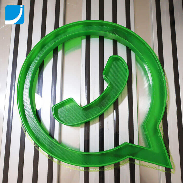 This illuminated custom signage WhatsApp is made by a 3D printer in China, it is also called 3D signage printer, LED channel letter printer, 3D printing equipment or 3D letter printing machine in the signage industry, it is a specialized type of industrial 3D printer designed to fabricate 3D channel letters or LED illuminated custom signages through additive manufacturing processes. No bending machine (bender) or UV curing machine is needed, and no acrylic panel or liquid acrylic is needed to make this illuminated custom signage.